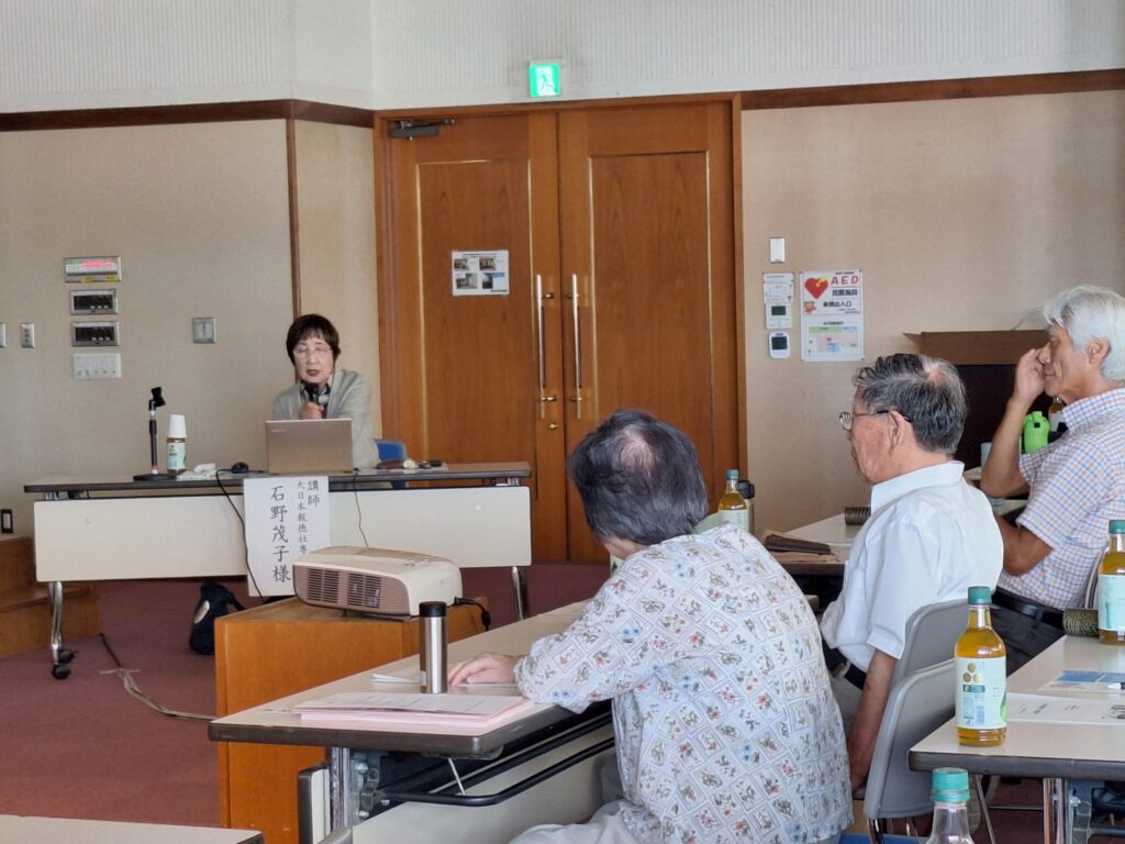 本年度は、第一部と第二部とに分け、第一部では、今のような混沌とした時代にこそ必要だと思われる、二宮尊徳翁の「報徳の教え」について「大谷翔平と報徳の教え」と題して、掛川市に本部を置く大日本報徳社の石野茂子専務理事にご講演いただきました。